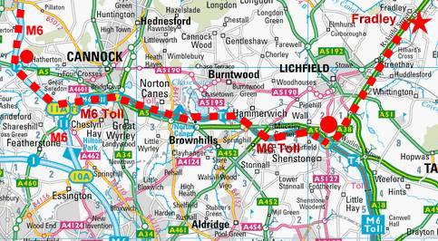 and then follow the M6 Toll to JT4 (Lichfield). At the Weeford